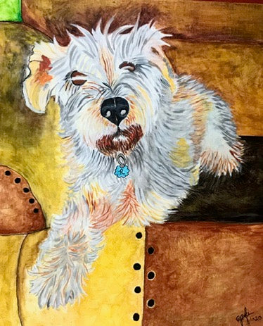 Memo was a commissioned work to be given as a Christmas gift to a very talented art framing professional and her husband in Columbus, Ohio. Memo was a rescue pup. He delights EVERYONE that he meets and is the love of his "parent's" life.