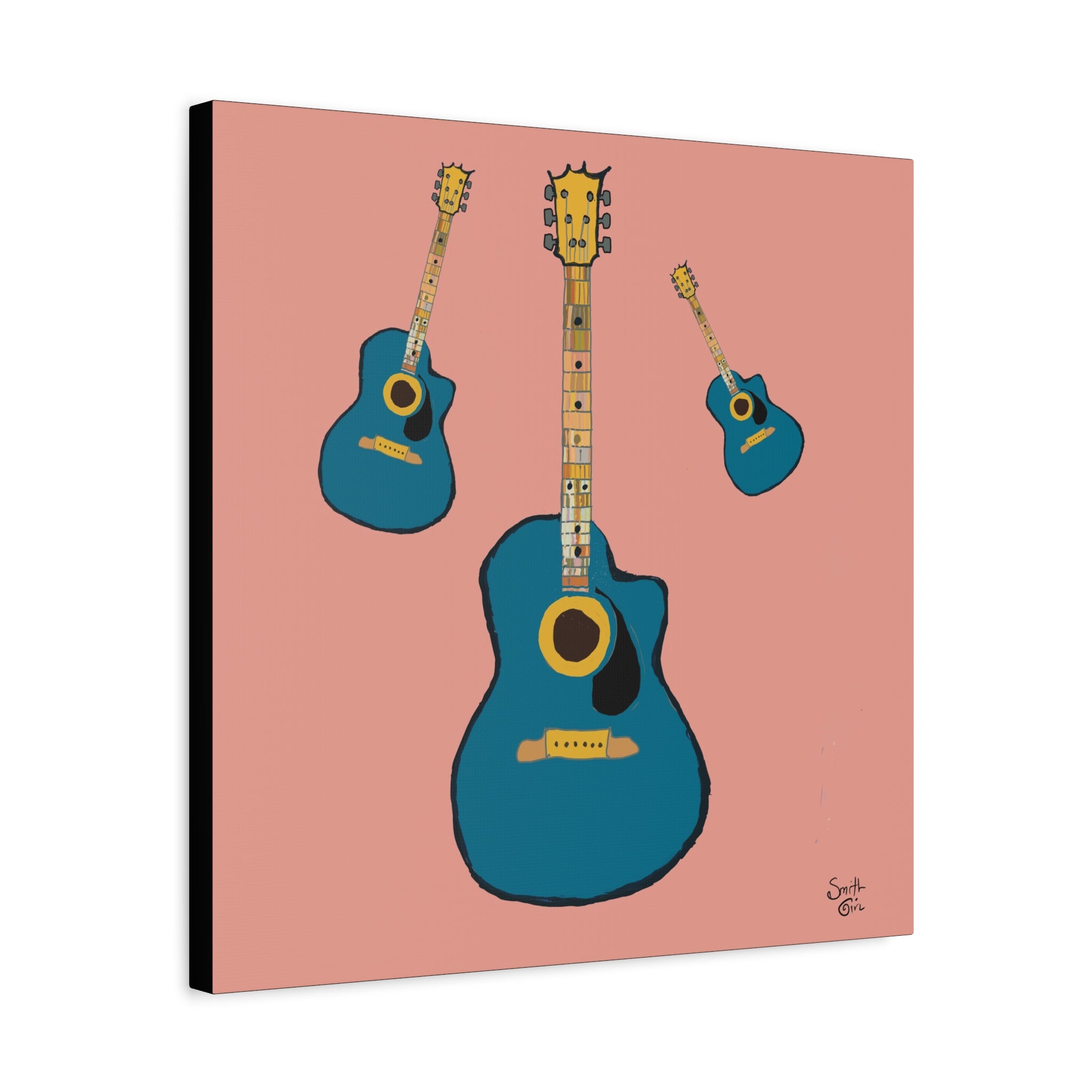 This stretched matte canvas brings guitar art to life with warm, textured tones and museum-quality detail. The cotton-poly canvas is coated using a proprietary process and printed with UL-certified Greenguard Gold latex inks, so colors stay vivid without harsh chemicals. Stretched over a radial pine frame sourced from FSC-certified renewable forests, the piece arrives ready to hang with soft rubber dots on the back to keep it steady and protect your wall. Choose from a wide range of sizes and orientations to suit your space — from intimate nooks to living-room focal points. The subtle matte finish reduces glare and gives the illustration a tactile, handcrafted feel that complements studio walls, music rooms, or cozy corners where sound and art meet.